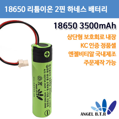 [A-ONE LITE][리튬이온배터리]AG3500A 18650 3500mah/3.7v 2핀 하네스 보호회로상단형 충전지(주문제작) > 배터리팩